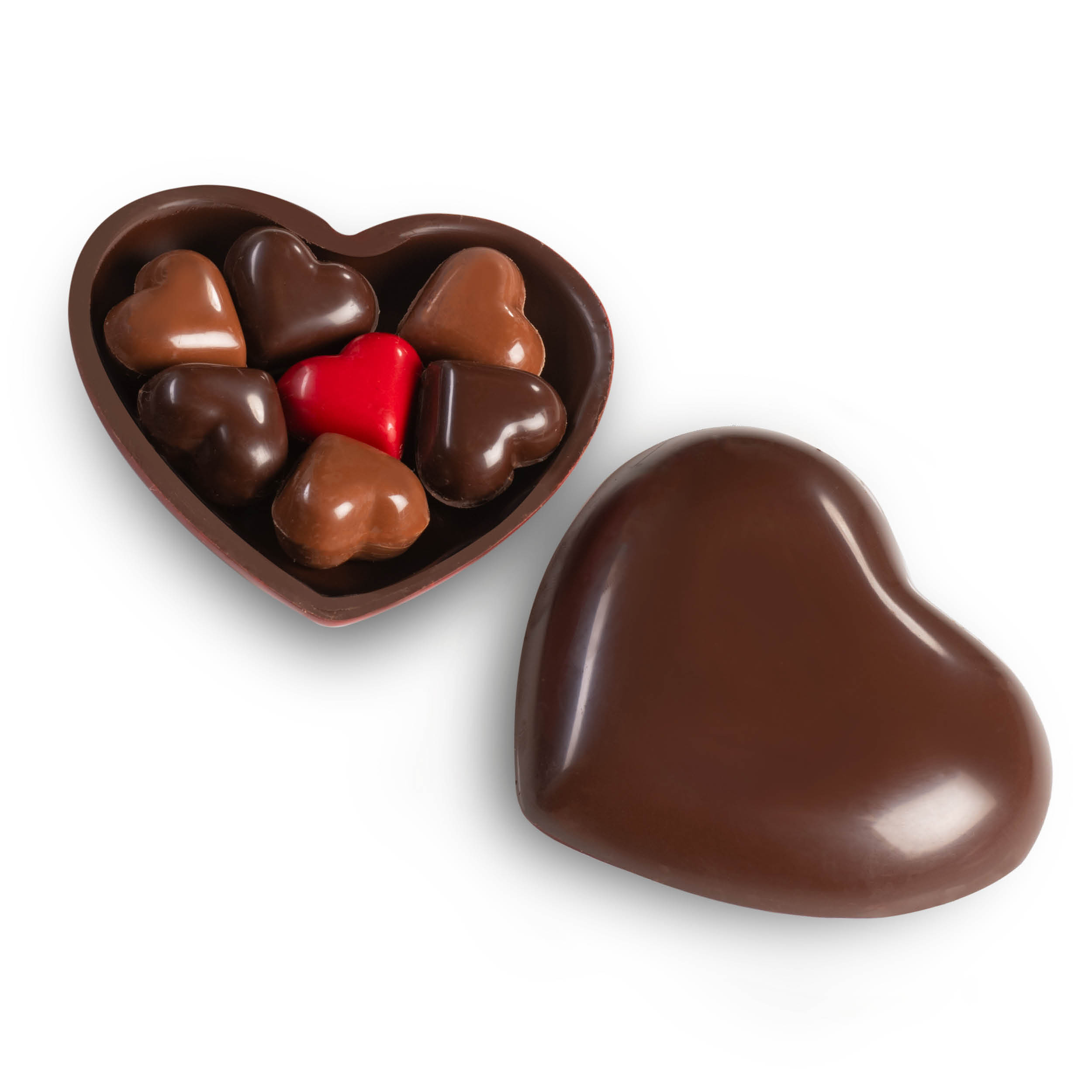 – 3 cioccolatino cuore al latte con cremino alle nocciole e granella di nocciola Tonda Gentile delle Langhe
