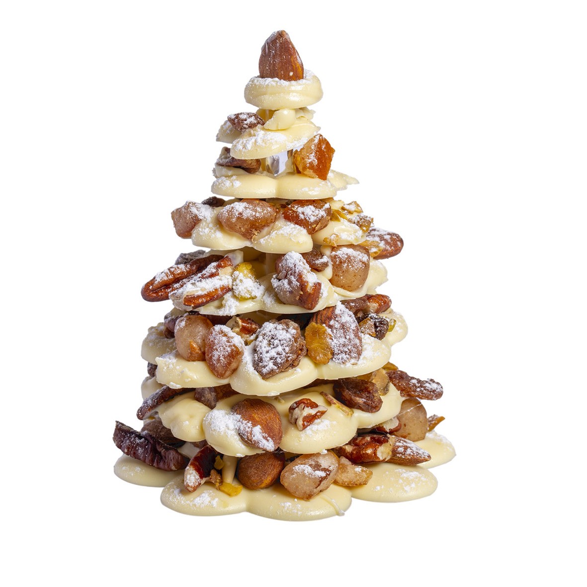 Strati di cioccolato e frutta secca da montare grazie al semplice kit presente nella confezione.