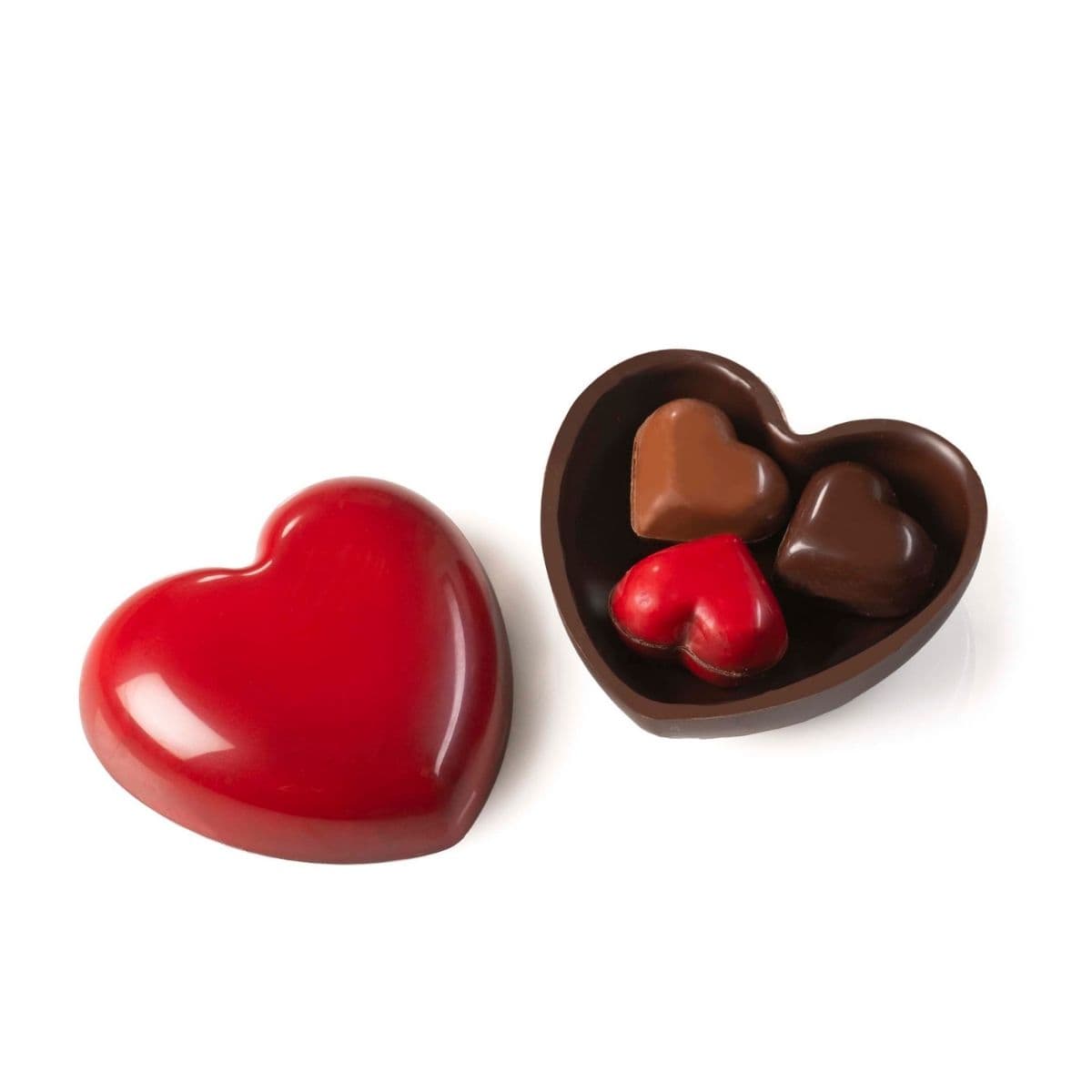 – 1 cioccolatino cuore rosso pistacchio verde di Bronte e mandorla.